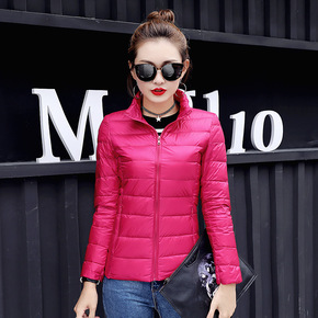 文艺范立领纯色90%白鸭绒短外套女装秋冬新款休闲百...