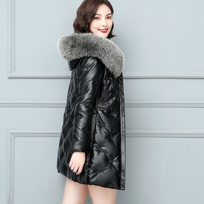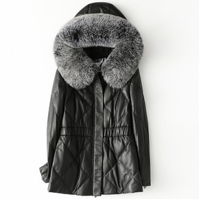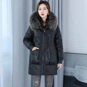 海宁真皮羽绒服皮衣女中长款2021冬装新款绵羊皮狐...