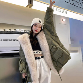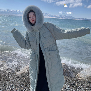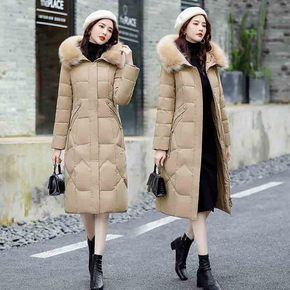 2021反季中长款羽绒服女韩版修身长款过膝加厚大毛...