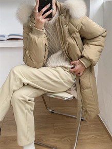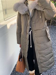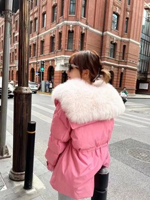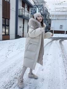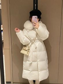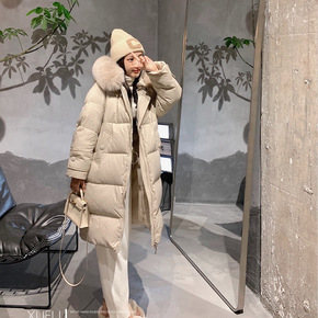 抗雪防寒风!真狐狸大毛领白色鹅绒羽绒服长款过膝气质...
