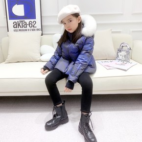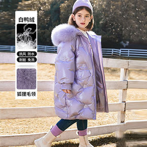 202新款冬装亮面羽绒服中长款加厚保暖女童大毛领白...