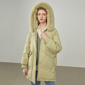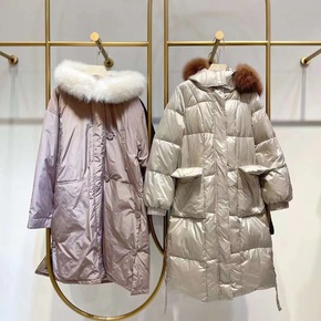h.h中长款羽绒服女冬季新款狐狸毛领连帽韩版加厚白...
