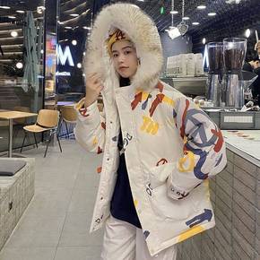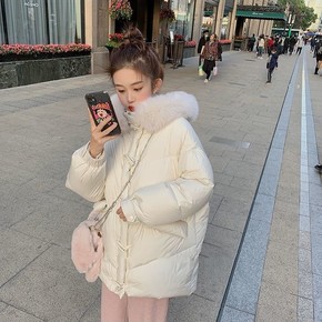 宽松加厚韩版收腰羽绒服女2021冬新款韩国短款白鸭...