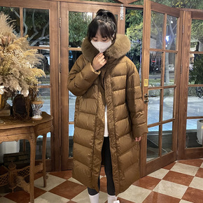 女式羽绒服冬季新款2021韩版修身显瘦长款过膝大毛...