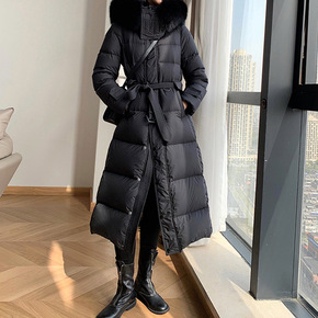 2020大狐狸毛领加长羽绒服女过膝到脚踝北方时尚羽...