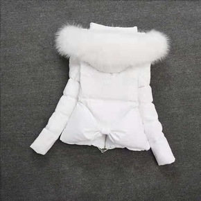 白鸭绒短款时尚修身白色羽绒服女加厚大毛领外套...