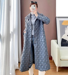 三宅褶皱立领风衣女刺绣格子棉外套2021冬季新款宽...