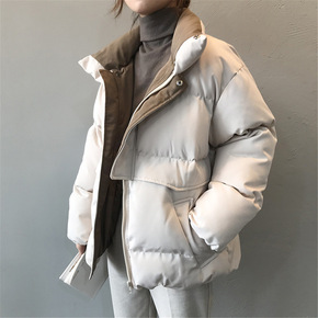 欧美风时尚ins立领短款棉服女宽松显瘦保暖夹克外套...