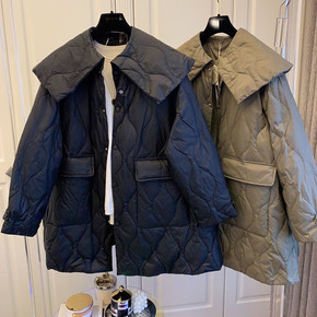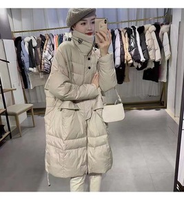 欧洲站新款新款收腰立领中长款裙摆修身显瘦轻薄羽绒服...