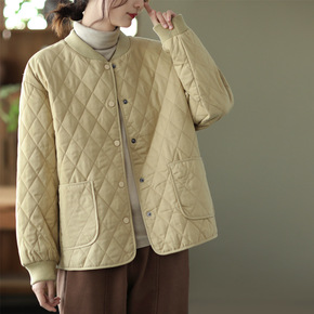 2021冬季新款文艺复古棒球立领夹棉棉衣菱格单排扣...