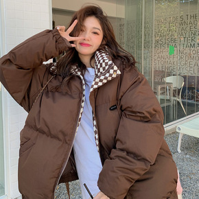 格子面包服女软糯奶油系工装炸街复古棉服vintag...