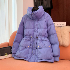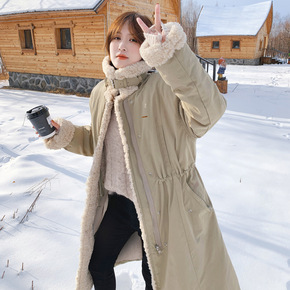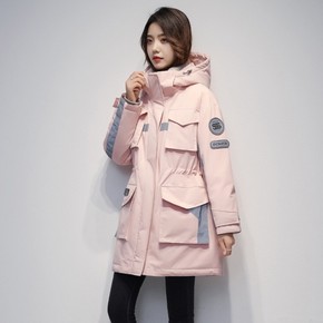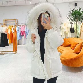 2022年新款韩版抽绳收腰羽绒服女中长款派克工装大...
