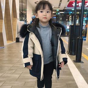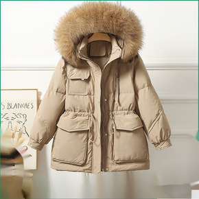 儿童工装羽绒服大毛领女童反季童装洋气加厚冬季白鸭绒...