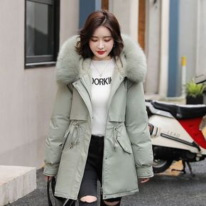 冬季加厚大毛领羽绒服女中长款工装派克服2022年新...
