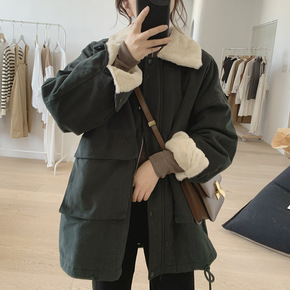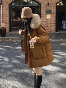22冬季新款韩版宽松工装立领连帽毛领棉衣派克棉服 ...