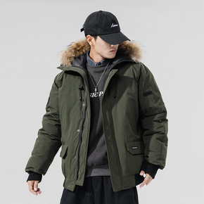 派克服羽绒服女2021年新款韩版短款工装加厚大毛领...