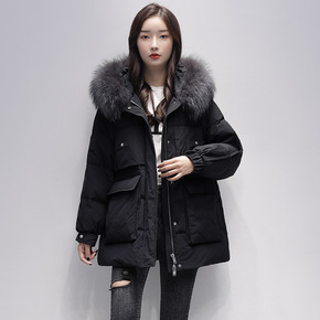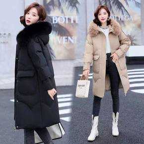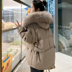 大毛领羽绒棉服女中长款冬季2022新款韩版宽松工装...