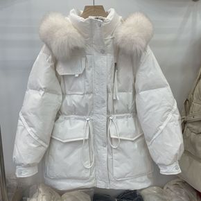 南山初雪网红同款白鸭绒狐狸毛领羽绒服女中长款百搭工...
