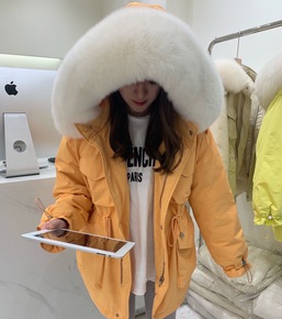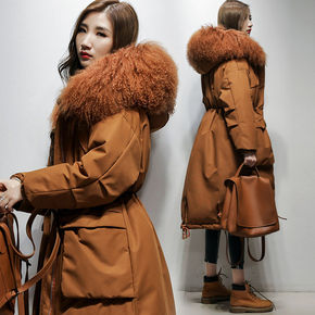 2022新款派克羽绒服皮草女中长款大毛领工装小个子...