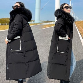 白鸭绒羽绒服女中长款2022冬季新款加厚大毛领羽绒...