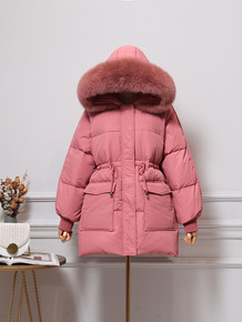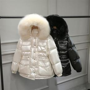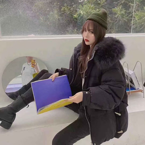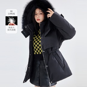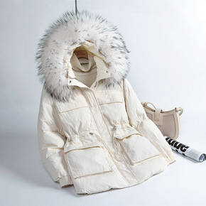 韩国2021年冬季新款大毛领羽绒服女抽绳收腰时尚修...