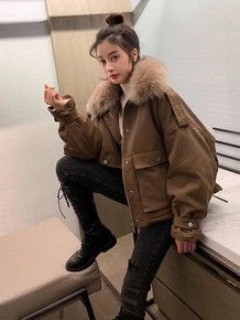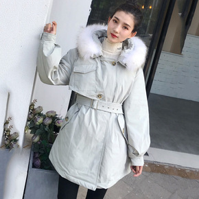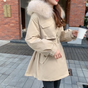 袖口狐狸毛领派克羽绒服女2021新款冬季韩版系带收...