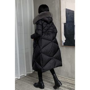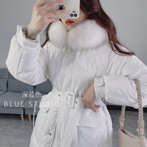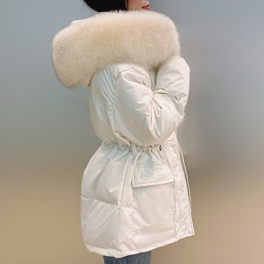 反季羽绒服女2021年新款冬中长款白鸭绒大毛领收腰...
