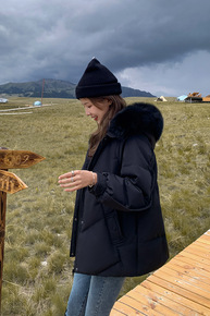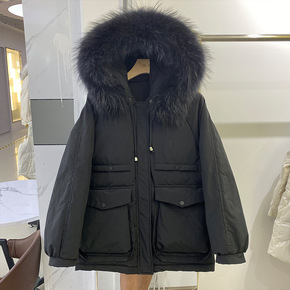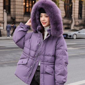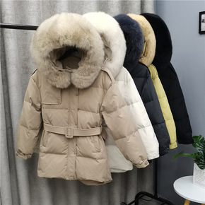 2021新款宽松收腰百搭连帽羽绒服可拆卸真毛狐狸毛...