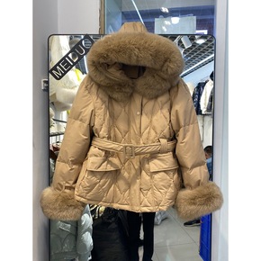 欧洲站2020冬季新款羽绒服女90白鸭绒收腰狐狸毛...
