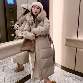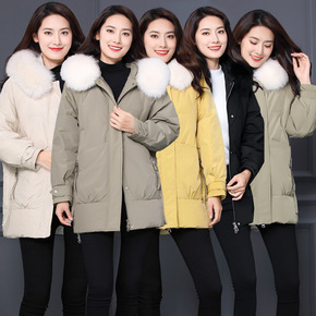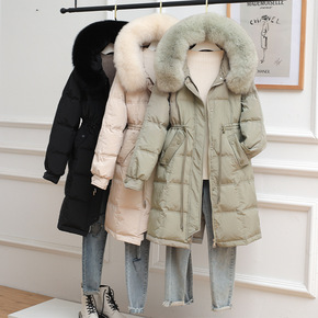 韩国大毛领羽绒服女中长2021年反季新款白鸭绒爆款...