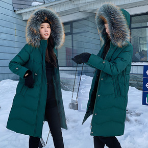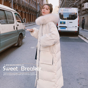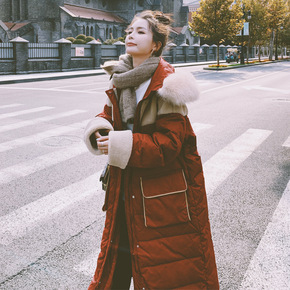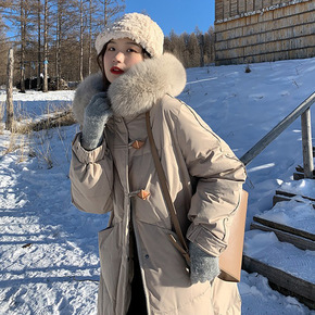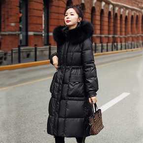网红同款小粽子狐狸毛领羽绒服女中长款加厚过膝新款冬...