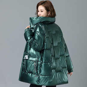 2021年冬装新款棉服保暖加厚休闲时尚中长款棉衣亮...