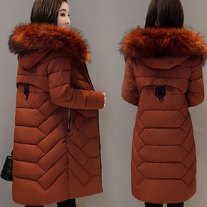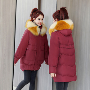 2021冬季新款中长款棉衣大毛领连帽羽绒棉棉服修身...