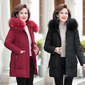 妈妈装冬装加厚中长款棉服外套中老年女士加绒保暖棉衣...