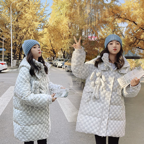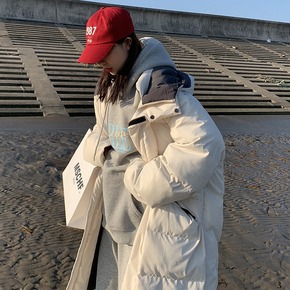 丁丁连帽棉服女2021冬季新款韩版宽松加厚保暖中长...