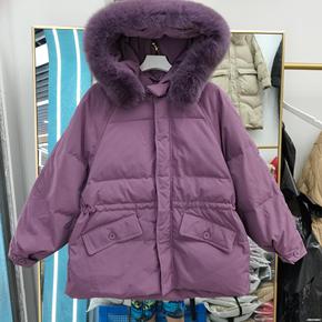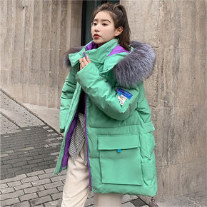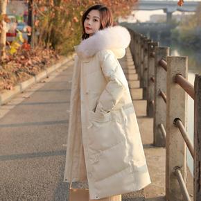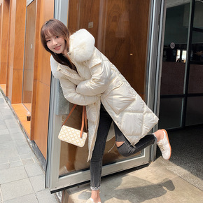 韩国东大门大毛领羽绒服女中长款2022新款连帽收腰...