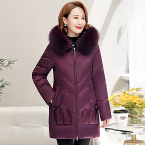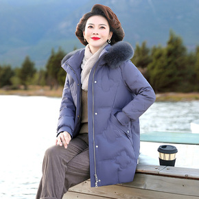 中老年妈妈装羽绒服白鸭绒狐狸毛领冬装女加厚外套可授...