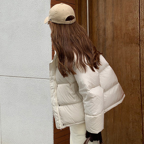 韩版白鸭绒立领羽绒服女2022冬季小个子宽松纯色保...