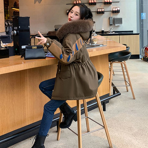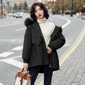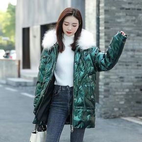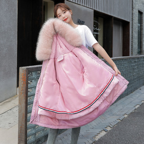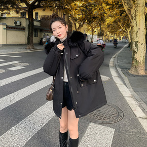 棉衣女中长款2021新款韩版修身大毛领加厚保暖羽绒...