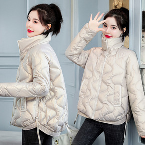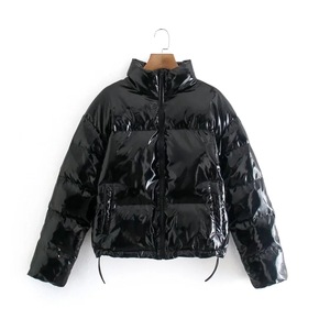 2022冬季外贸欧美风新款时尚面包服棉衣女亮面立领...