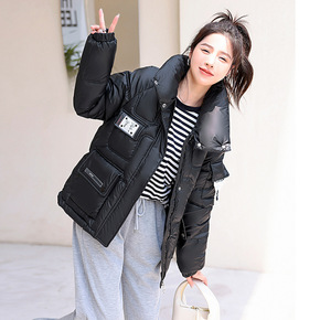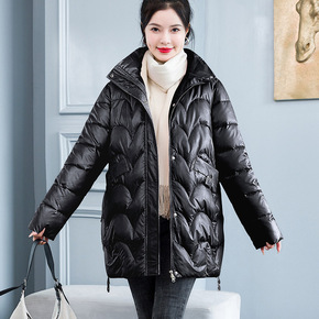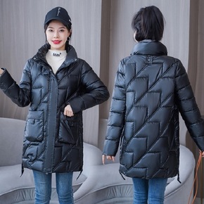 中长款棉服女2022冬新款亮面宽松面包服加厚棉袄韩...