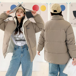 2021秋季韩国ins新款原宿宽松韩版加棉立领棉服...