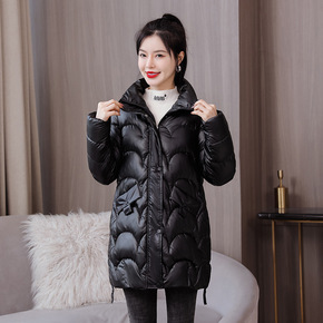 批发棉服女中长款2022年新款冬季棉衣纯色修身显瘦...