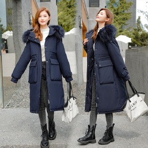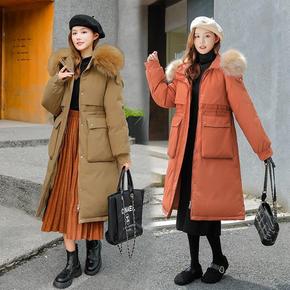 2022新款外贸大毛领过膝收腰长款网红款大口袋羽绒...