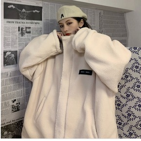 2021冬季原宿羊羔毛两面穿夹克侣加厚立领外套棉衣...