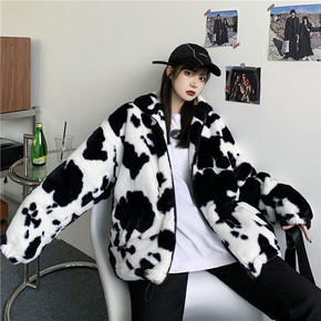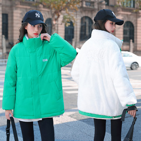 棉衣女2021新款宽松原宿韩版羊羔毛外套两面穿in...