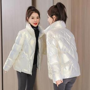 亮面短款2022新款韩版时尚女装立领棉服外套加厚棉...