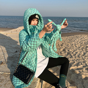 2021冬季自制原宿帅气街头棉服女情侣菱形格立领外...