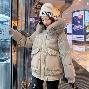 2022年冬季新款韩版短款大毛领羽绒棉服休闲随搭加...