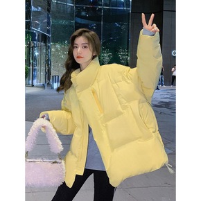 黄色短款羽绒服女小个子2021冬季新款韩版立领宽松...